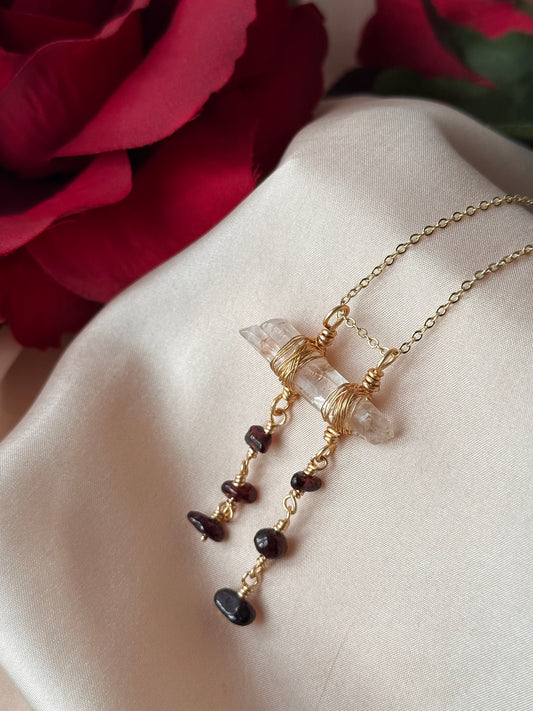 Bluem Rose Quartz Double Strand Pendant Necklace