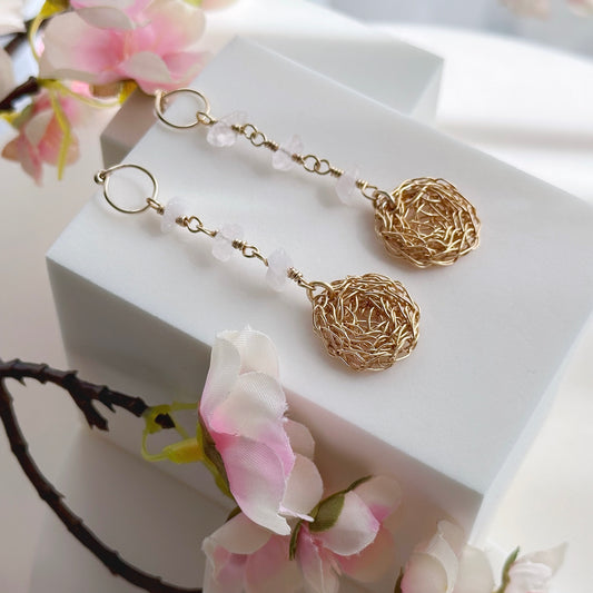 Belamora, Rose Quartz, Cosmic Medallion Earrings