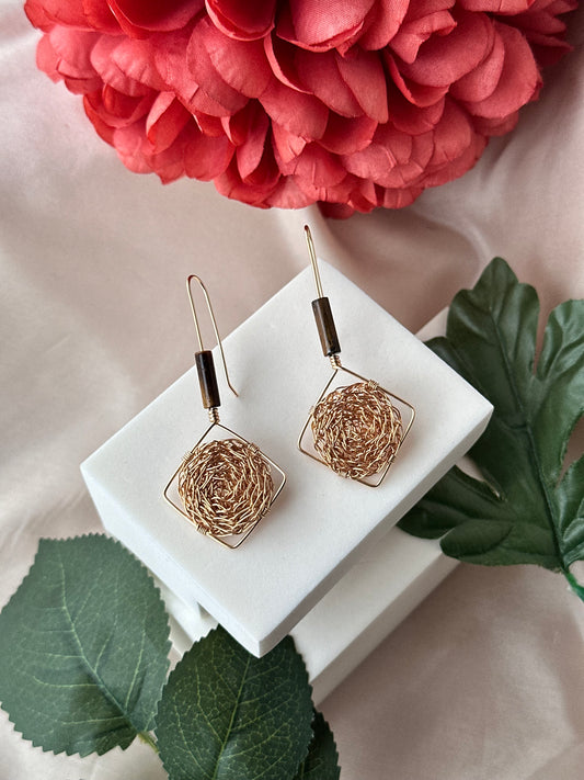 Thia Tiger’s Eye Cosmic Medallion Earrings – Spiritual Statement Jewellery