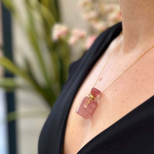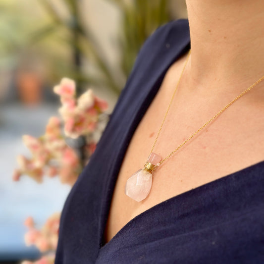 Rose Quartz Aromatherapy Perfume Bottle Pendant & Essential Oils