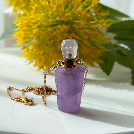 Amethyst Perfume Bottle Pendant Necklace & Essential Oils Set